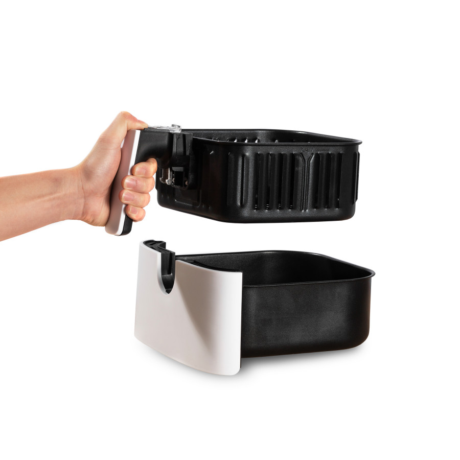 Квадратна форма Cosori дозволяє готувати за один раз великі порції продуктів. Об'єм 5,5 літрів дає можливість легко створювати багато картоплі, ковбасок чи крилець для себе, сім’ї та друзів. Таким чином ви можете зробити кухонний процес значно ефективнішим, а отже, зекономити ваш час.