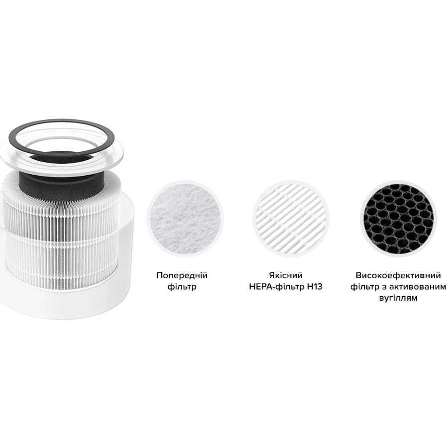 Серце пристрою — тришарова система захисту. Нейлоновий префільтр затримує великі частки (шерсть, волокна), True HEPA-фільтр нейтралізує 99,97% мікрочастинок (пилок, бактерії, дрібний пил), а високоефективний вугільний шар поглинає побутові запахи, дим та леткі сполуки. Це комплексне рішення, яке допомагає полегшити симптоми алергії та астми, створюючи безпечне середовище для дітей та дорослих.